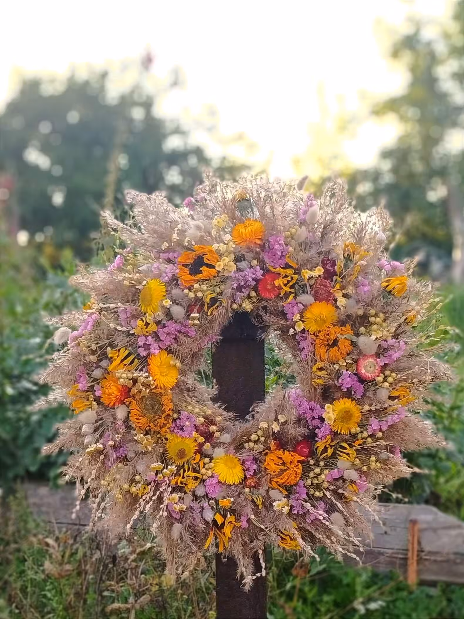 Věnec jako dekorace na dveře z čistě ekologických materiálů, květin pěstovaných na našem poli nebo posbíraných v okolí. Věnec je vázaný drátkem nebo šitý nití, přízdoby jsou z přírodních materiálů. K upevnění přízdob nepoužíváme tavnou pistoli. Výdrž věnce je dle umístění měsíce až roky. Věnce lze zkompostovat a zbyde po něm pouze drátek.